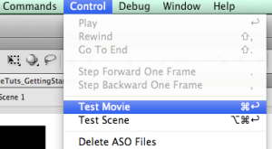 Run your code by going to “Control” –> “Test Movie”, or with the keyboard shortcut Command + Return (on a Mac).