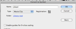 In reality, it doesn’t matter what you name your movie clip, but for clarity just name it “player”.