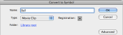 And now use Modify –> Convert to Symbol and turn it into a new Movie Clip object. You can name it “Ball”, or anything else that takes your fancy. One thing to be careful about is the Registration section. Click on the center block of the grid. This will make the center of the ball become the center of the object instead of one of the corners.
