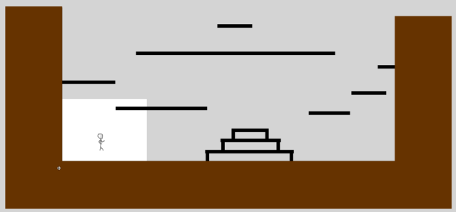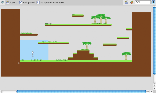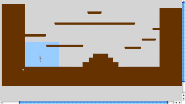 Also, just to make things more interesting, I took advantage of the fact that we can now double jump and I modified the drawing inside of the Background Collisions Container. After a bit of basic drawing using the rectangle tool filled with black, and no outline, I came up with the following. I used thick lines to minimize the errors of our current collision system. You can either try to replicate my own background, or just download my source code at the end, or you can try to create your own customized level map.
