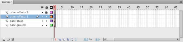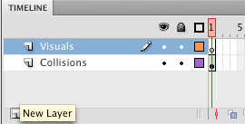 Inside the main background object, create a new layer above the Collisions Layer. You can do this by clicking the small square button shown in the image below, or by selecting Insert –> Timeline –> Layer. Rename it so that it reads “Visuals”. Right now, it has nothing in it. We’ll change that in steps 4 and 5.